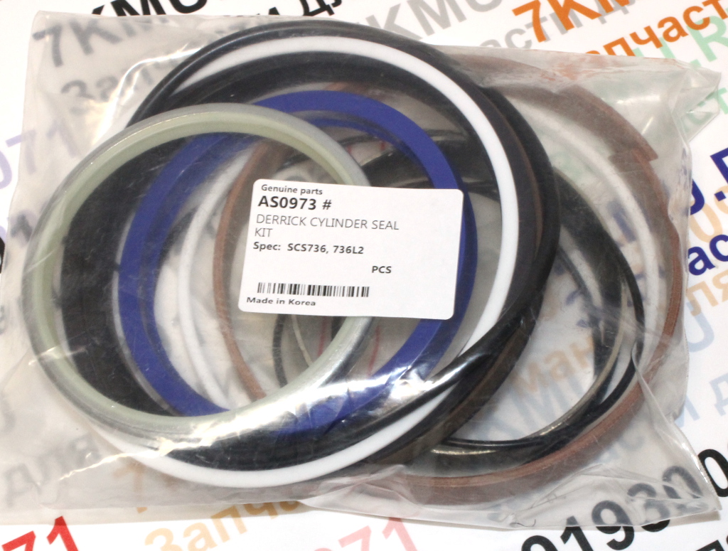 Комплект уплотнений для ремонта гидроцилиндра подъема стрелы корейского манипулятора Soosan 736, 736 LII.