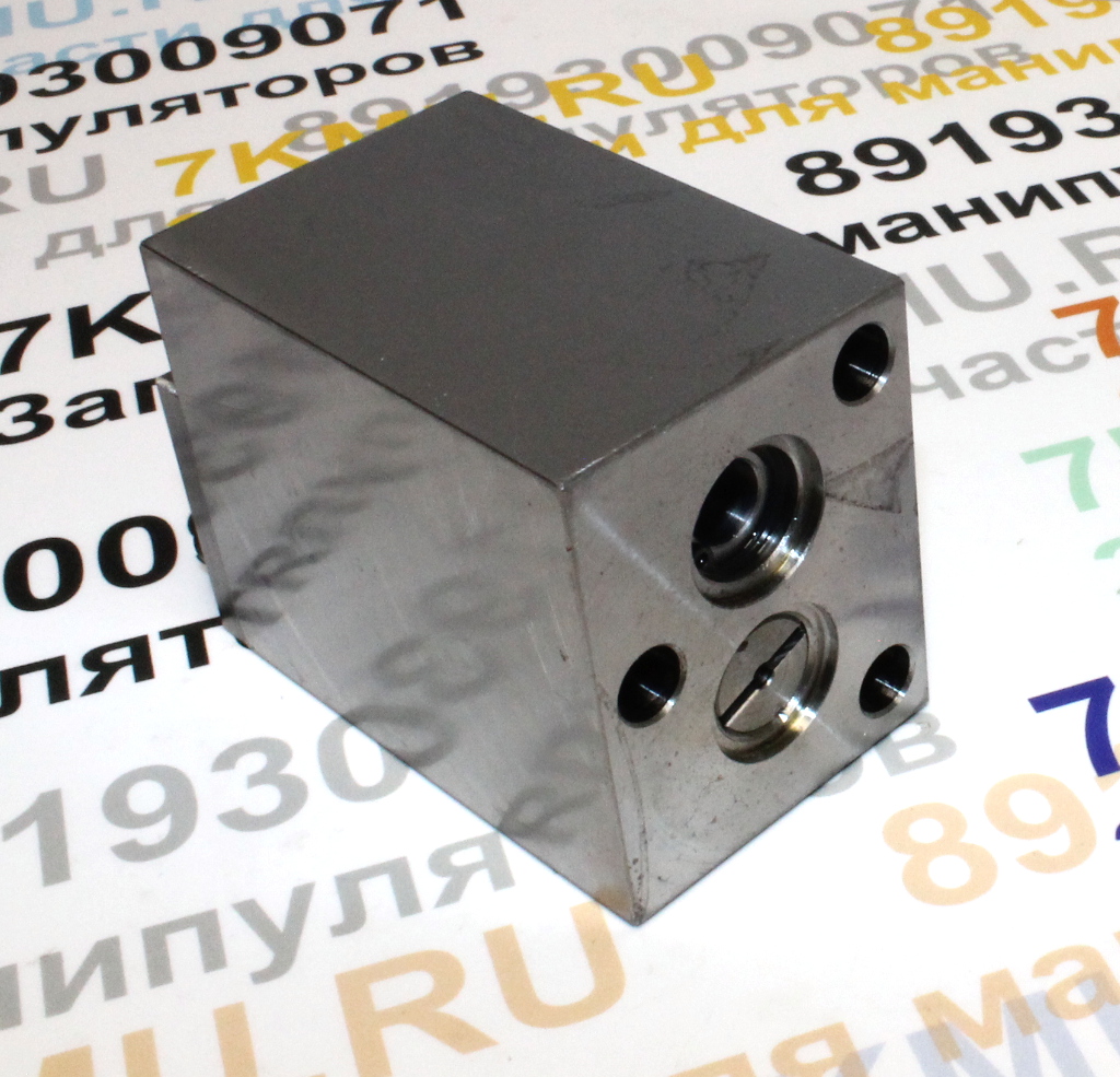 Оригинальный замок гидравлический телескопа стрелы КМУ Юник URV 500-й серии. Форма гидрозамка - квадратная. Конструктивно - это обратный гидравлический клапан. Предназначен для удержания гидравлического цилиндра выдвижения опор в неизменном положении в случае обрыва масляного шланга или трубки. Причиной износа служит грязное гидравлическое масло, наличие в масле воды или физический износ детали.