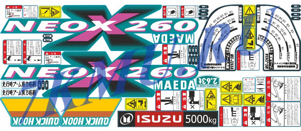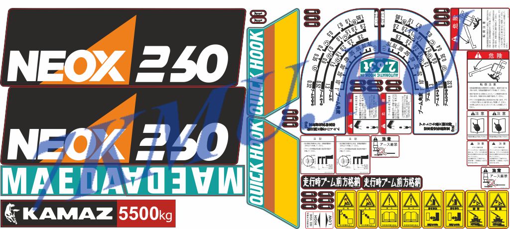 Комплект наклеек на стрелу и гак кран-манипулятора Maeda Neox МС260.