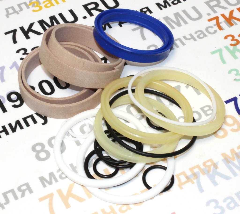 В состав входит: Штоковая манжета, манжеты (сальники) поршня, грязесъемник, резиновые уплотнительные кольца. Материал - полиуретан и резина, температурный режим от -30 до +100 градусов.