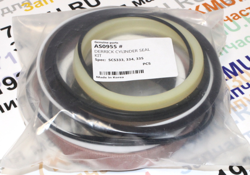 Комплект уплотнений для ремонта гидроцилиндра подъема стрелы корейского манипулятора Soosan SCS333.334.335 представляет собой набор сальников и прокладок для замены.