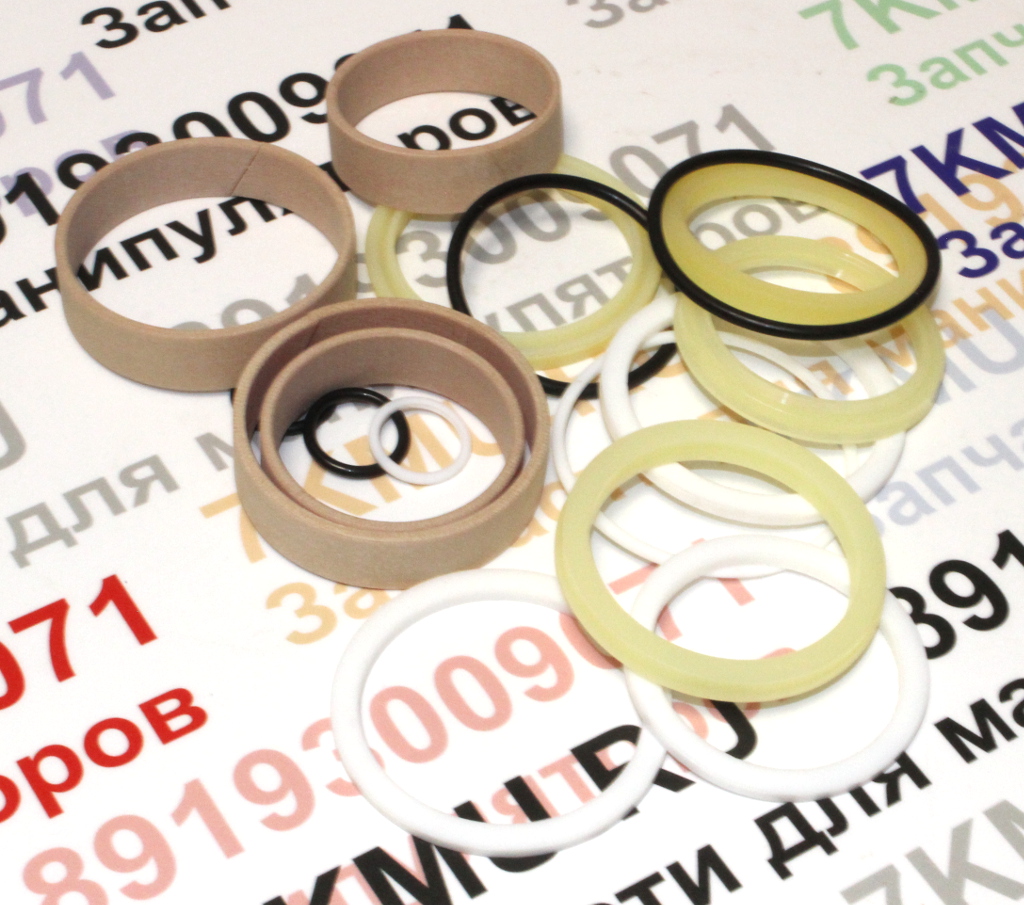 В состав входит: Штоковая манжета, манжеты (сальники) поршня, грязесъемник, резиновые уплотнительные кольца. Материал - полиуретан и резина, температурный режим от -30 до +100 градусов.
