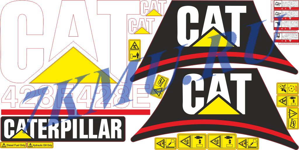 Изготавливаем комплекты наклеек (стикеров) для экскаватора-погрузчика Сaterpilar 428E.