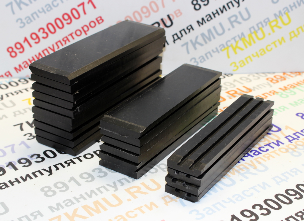 Комплект пластин скольжения (склизы, скользячка, плиты скольжения) стрелы кран-манипуляторной установки Soosan 887LS - это детали, изготовленные из специального антифрикционного материала, сочетающего в себе великолепные скользящие свойства и жесткость. Не боится влаги, морозов и ударов. Обеспечивает мягкость скольжения секций стрелы при выдвижении. Толщина 10,0 мм. На наружную сторону каждой выдвижной секции крановой установки Cусан устанавливается 2 верхних пластины скольжения и 2 нижних.