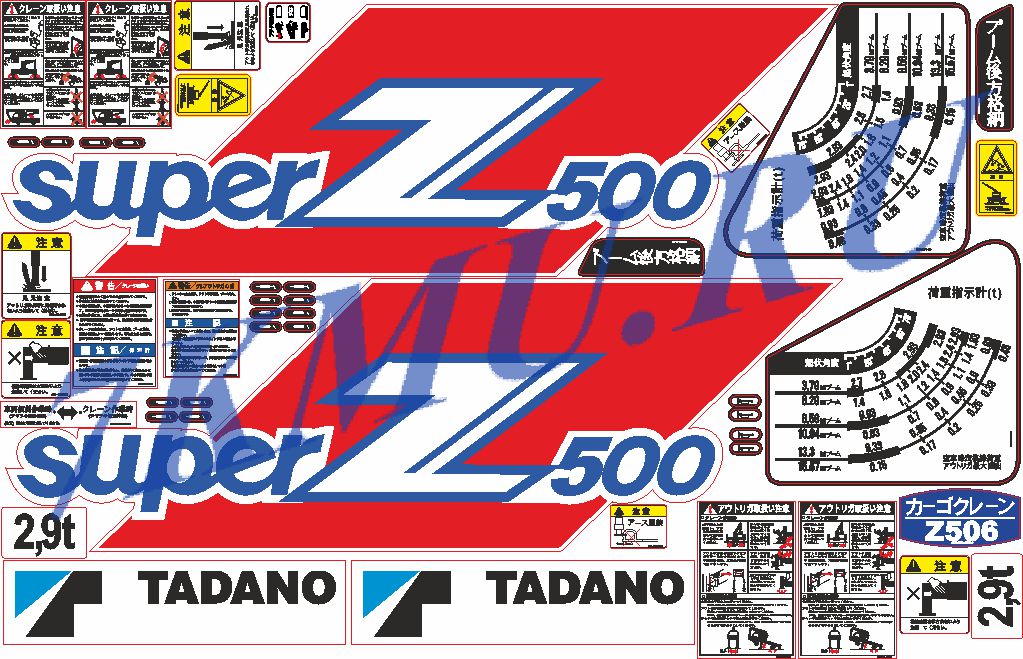 Состав комплекта стикеров для Тадано Супер Z500: