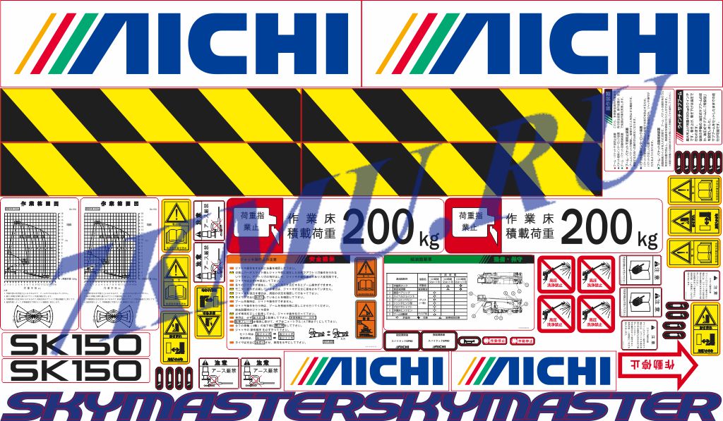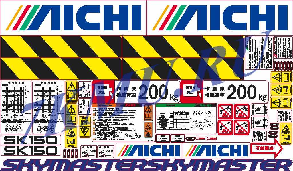 Предлагаем комплекты наклеек для автовышки Aichi SK150 японского производства.