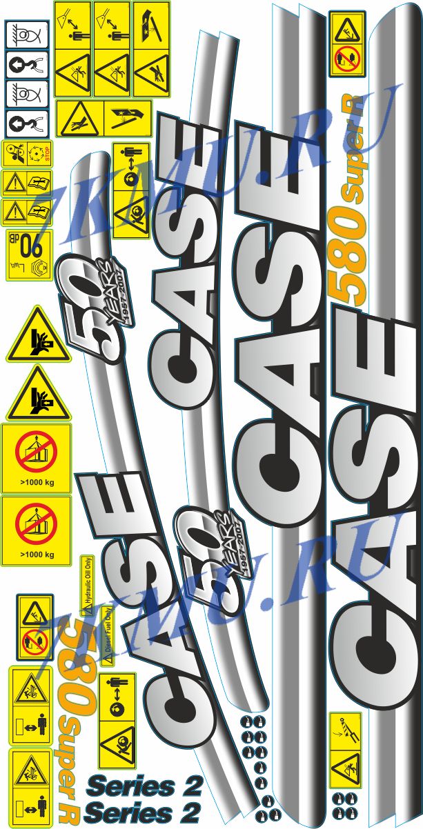 Изготавливаем комплекты наклеек (стикеров) для экскаватора-погрузчика Case 580 super R.