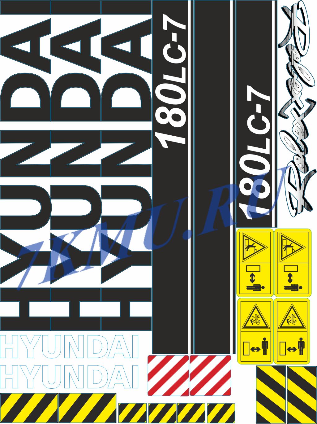 Изготавливаем комплекты наклеек (стикеров) для экскаватора Нyundai 180LC-7.