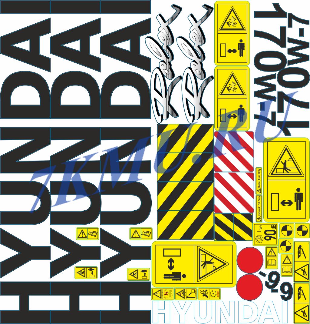 Комплект наклеек для экскаваторов Hyundai 170W-7