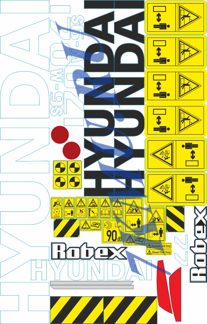 Предлагаем комплекты наклеек для спецтехники экскаватора экскаваторов Hyundai 170W-9S.