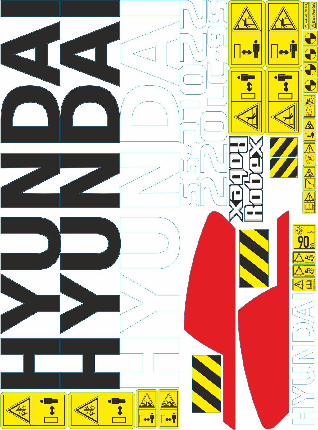 Комплект наклеек для экскаваторов Hyundai 220LC-9S