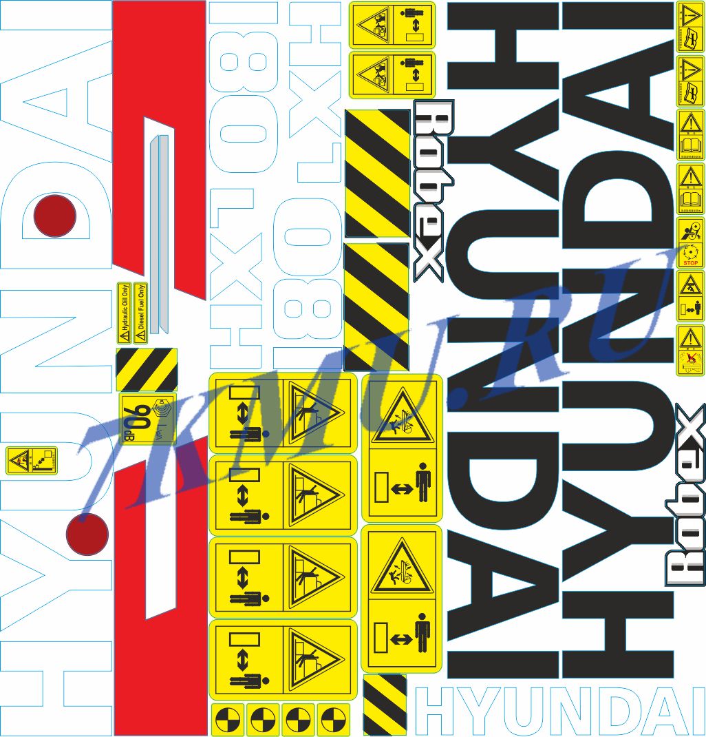 Комплект наклеек для экскаваторов Hyundai HX180L