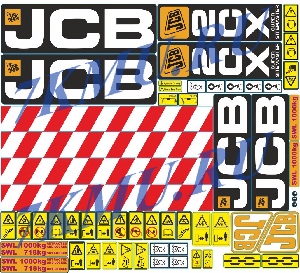 Изготавливаем комплекты наклеек (стикеров) для экскаватора JBC 2CX super sitemaster японского производства в двух дизайнерских и ценовых вариантах.