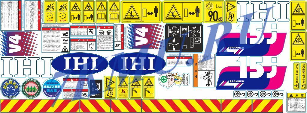 Изготавливаем комплекты наклеек (стикеров) для мини-экскаватора IHI 15J японского производства.