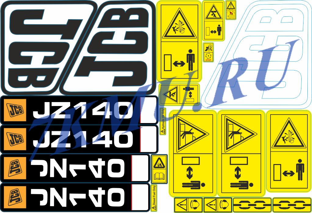 Если у Вас особые требования к размерам или цветовой гамме стикеров JCB JZ140 - мы поможем их воплотить в жизнь. Отрисуем, изготовим и поставим в срок наклейки для любой Вашей спецтехники в т.ч. в переводе на русский язык. Проконсультируем по уточнению модели оборудования, если наклейки обветшали и не читаются. Обновите свою технику во время текущих регламентных работ, предпродажной подготовки или капитального ремонта.
